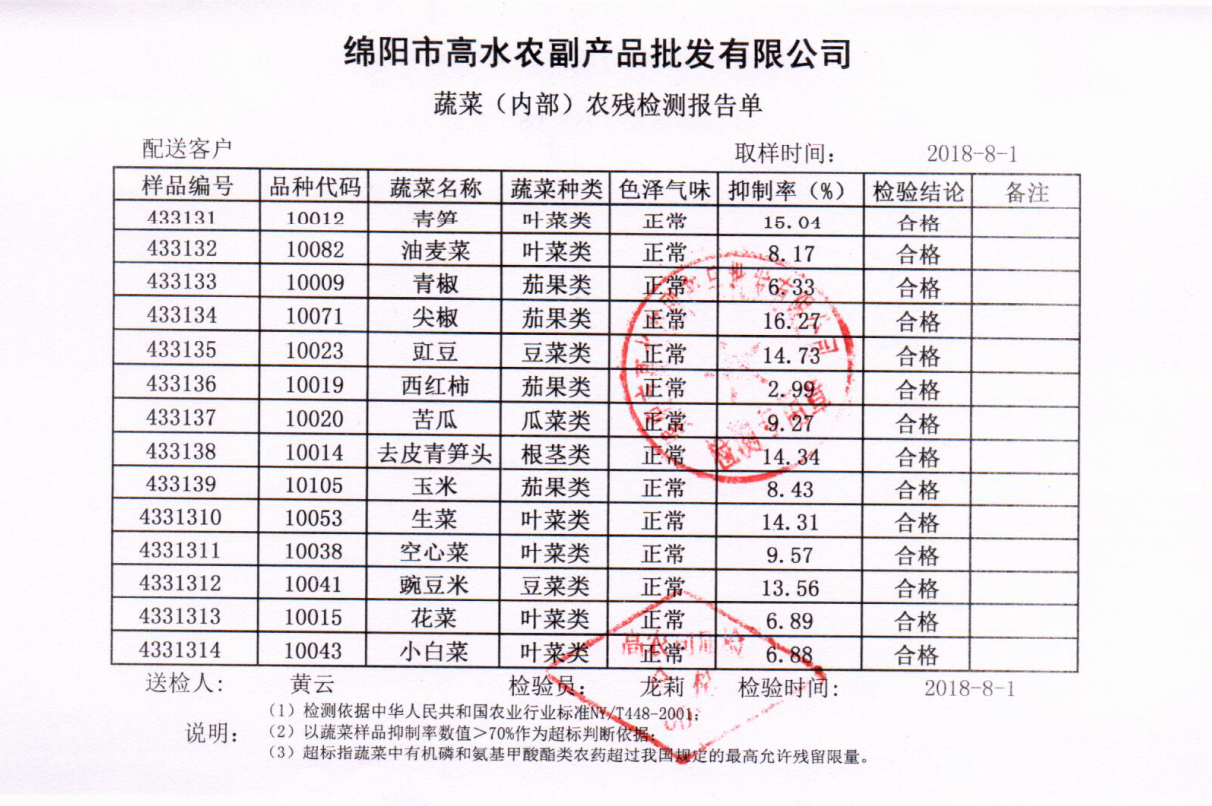 高农司农残检测报告单
