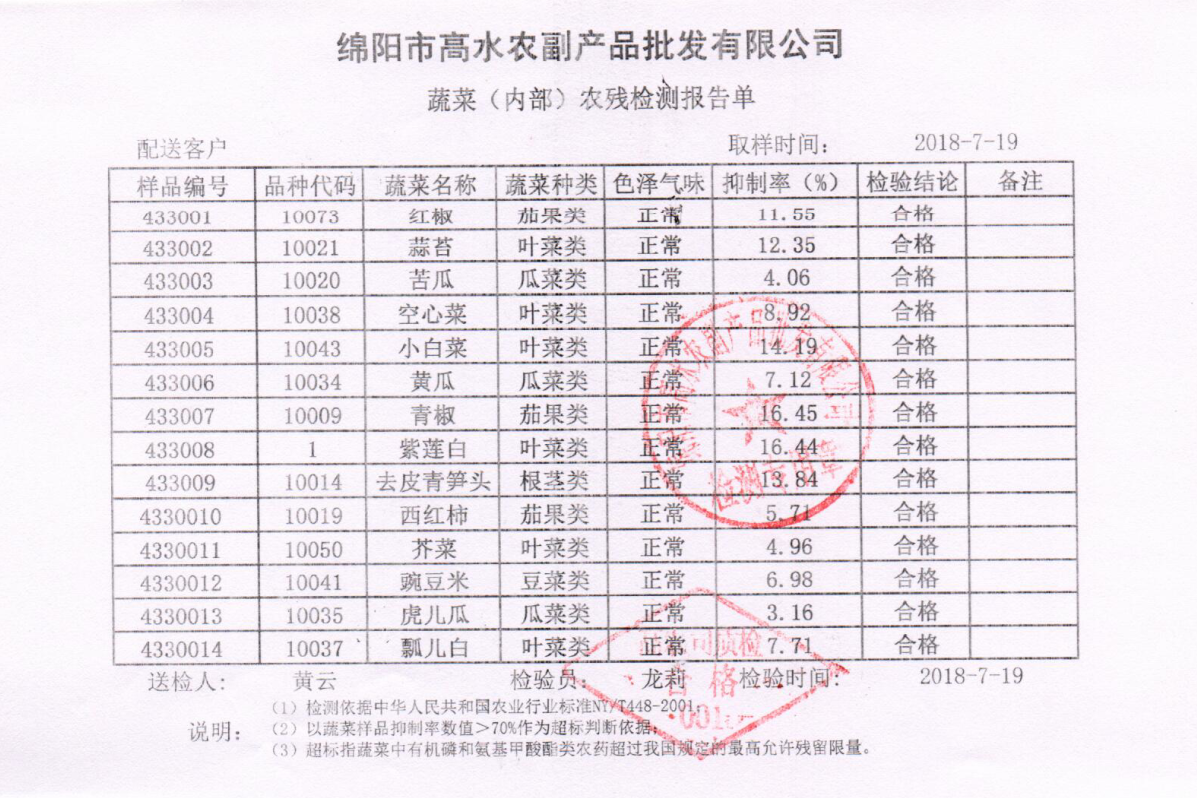 高农司农残检测报告单