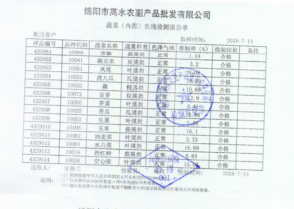 高农司农残检测报告单