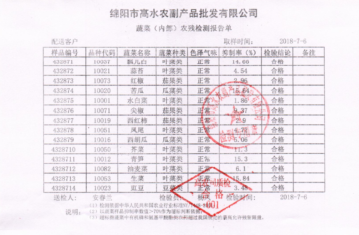 高农司农残检测报告单