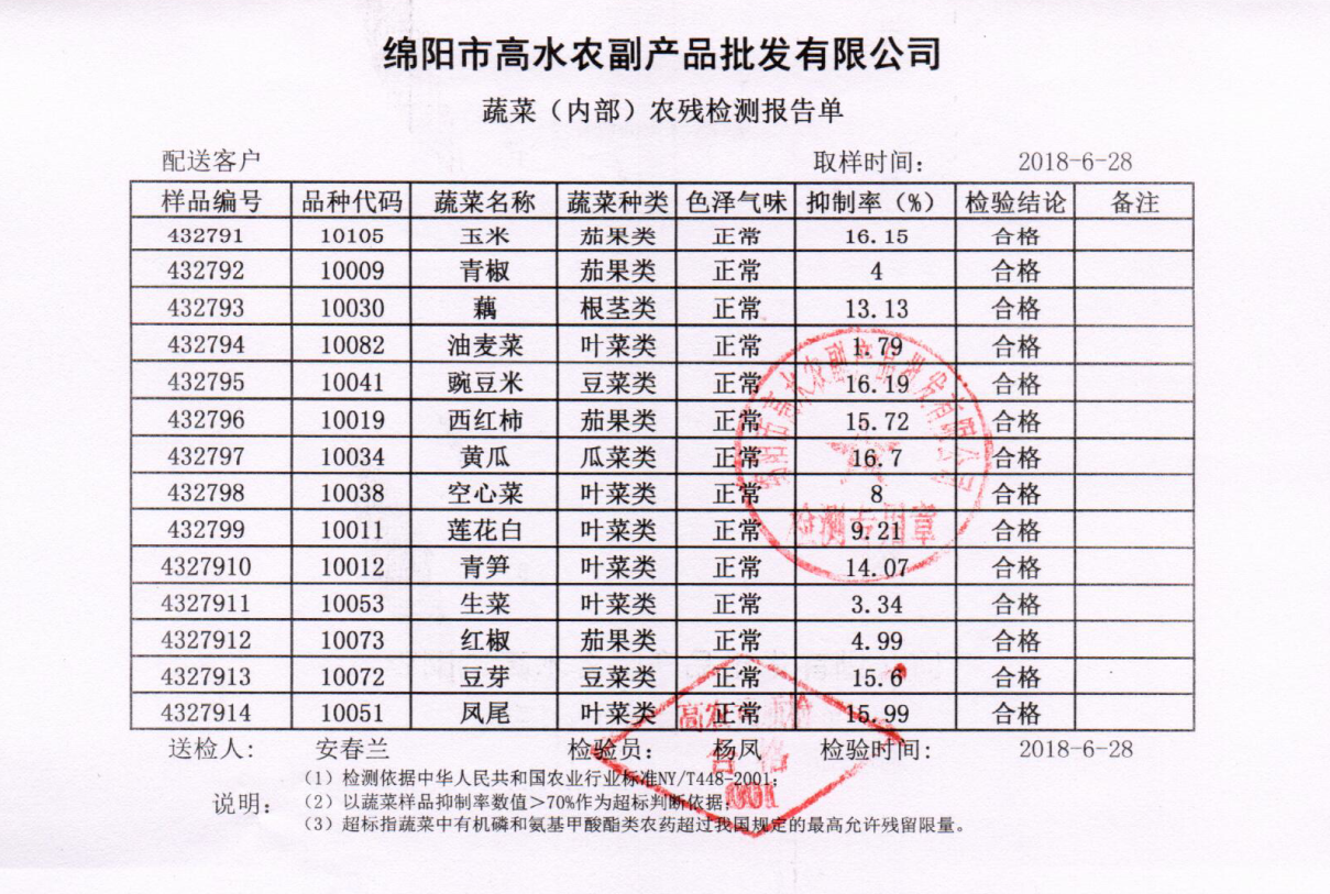 高农司农残检测报告单