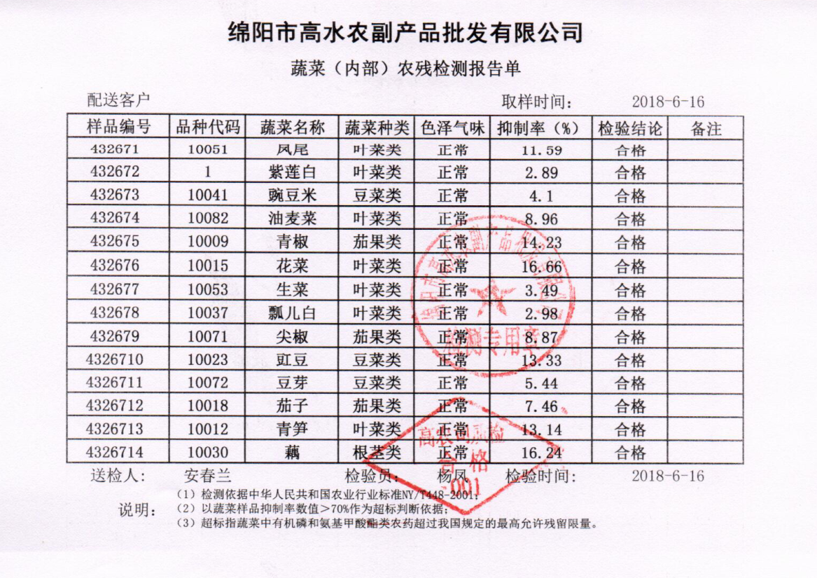 高农司农残检测报告单