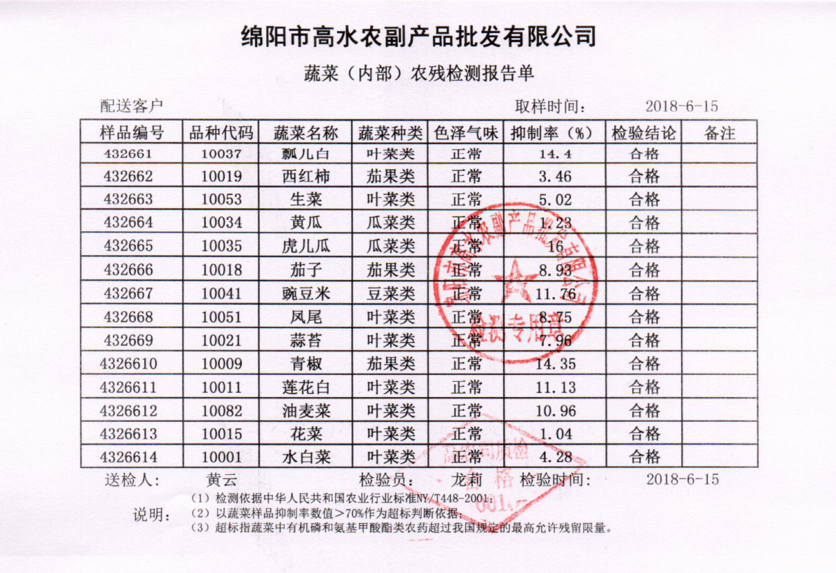 高农司农残检测报告单