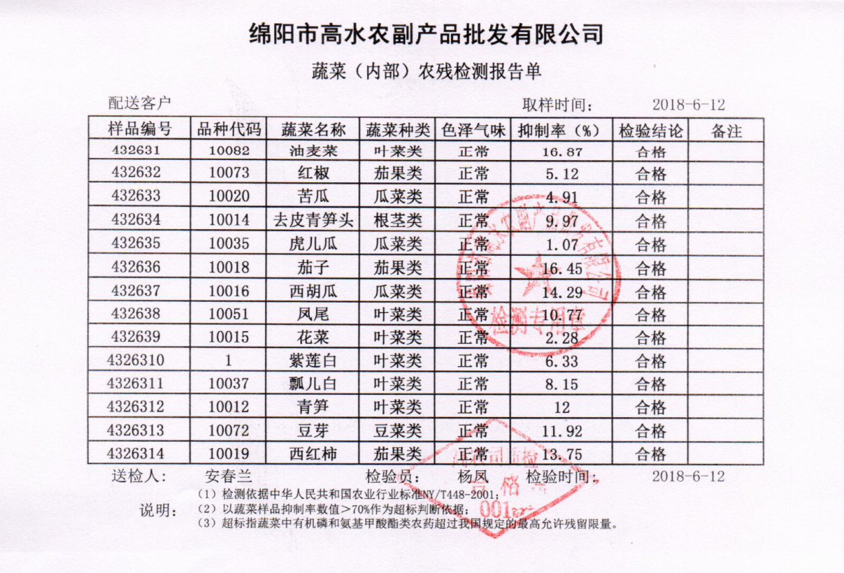 高农司农残检测报告单