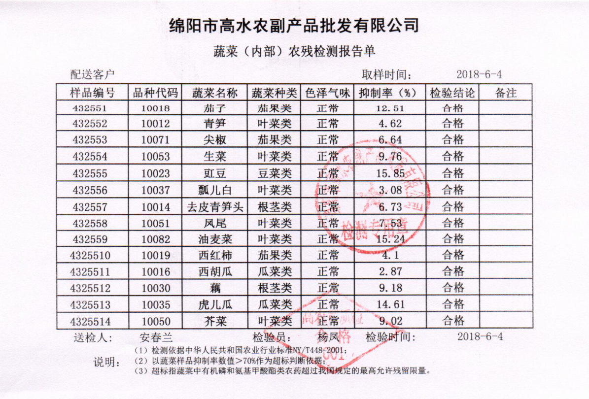 高农司农残检测报告单