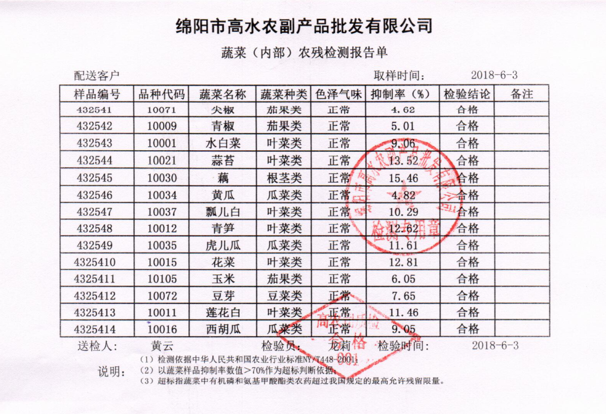 高农司农残检测报告单