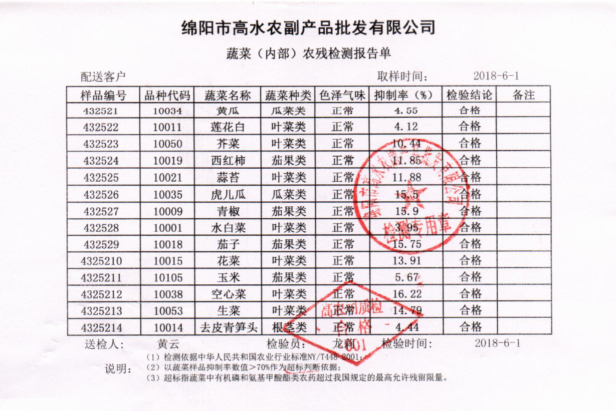 高农司农残检测报告单