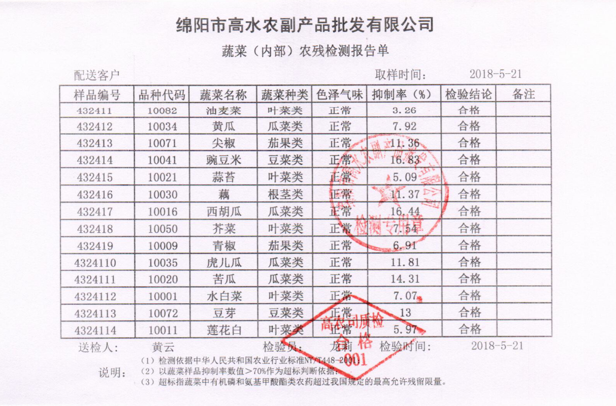 高农司农残检测报告单