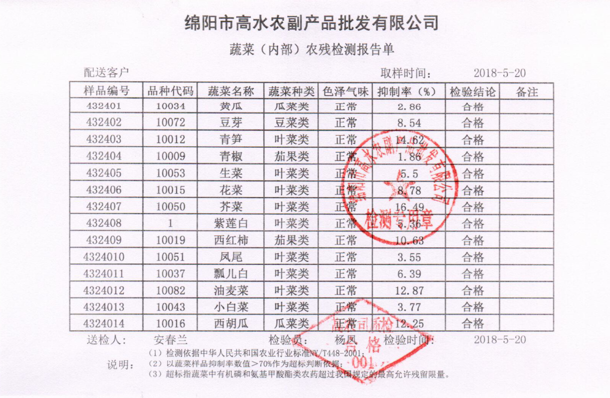 高农司农残检测报告单
