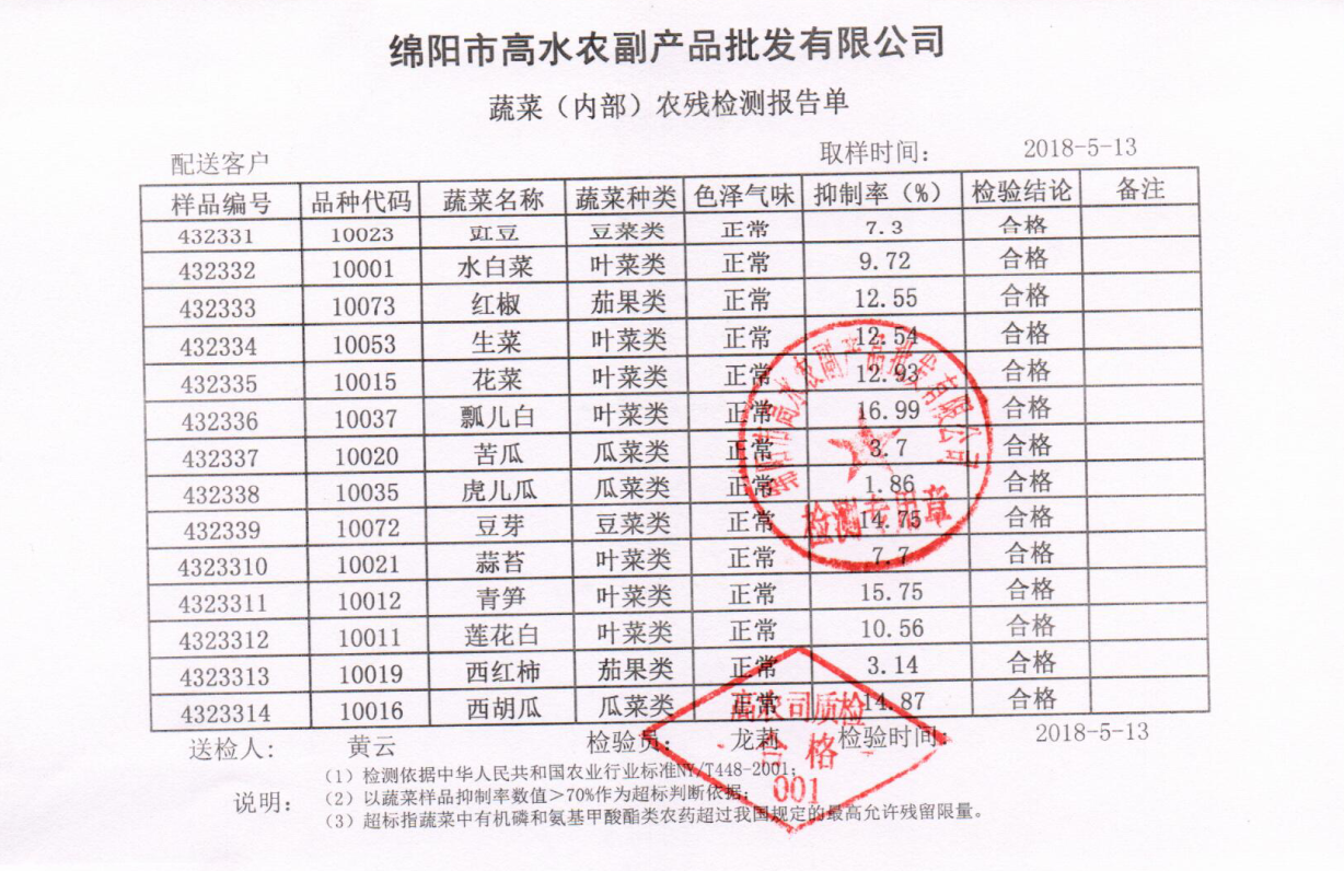 高农司农残检测报告单
