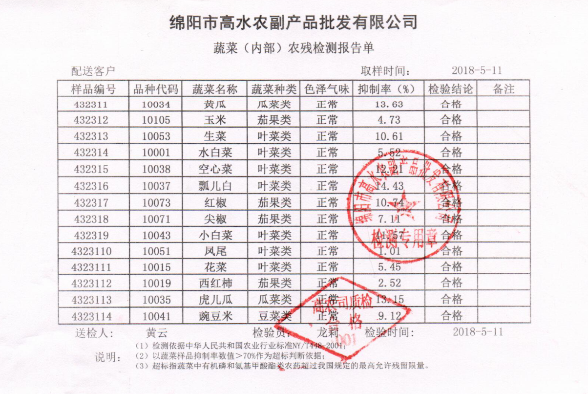 高农司农残检测报告单