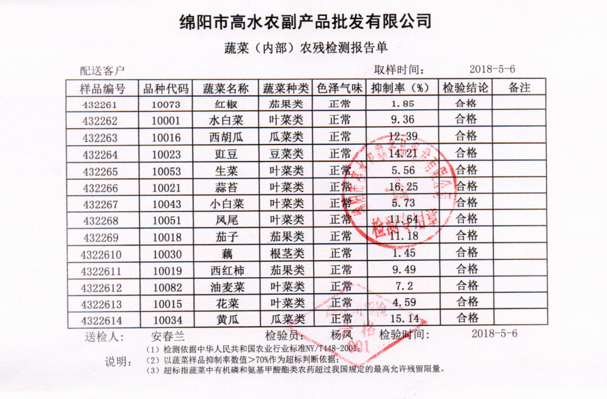 高农司农残检测报告单
