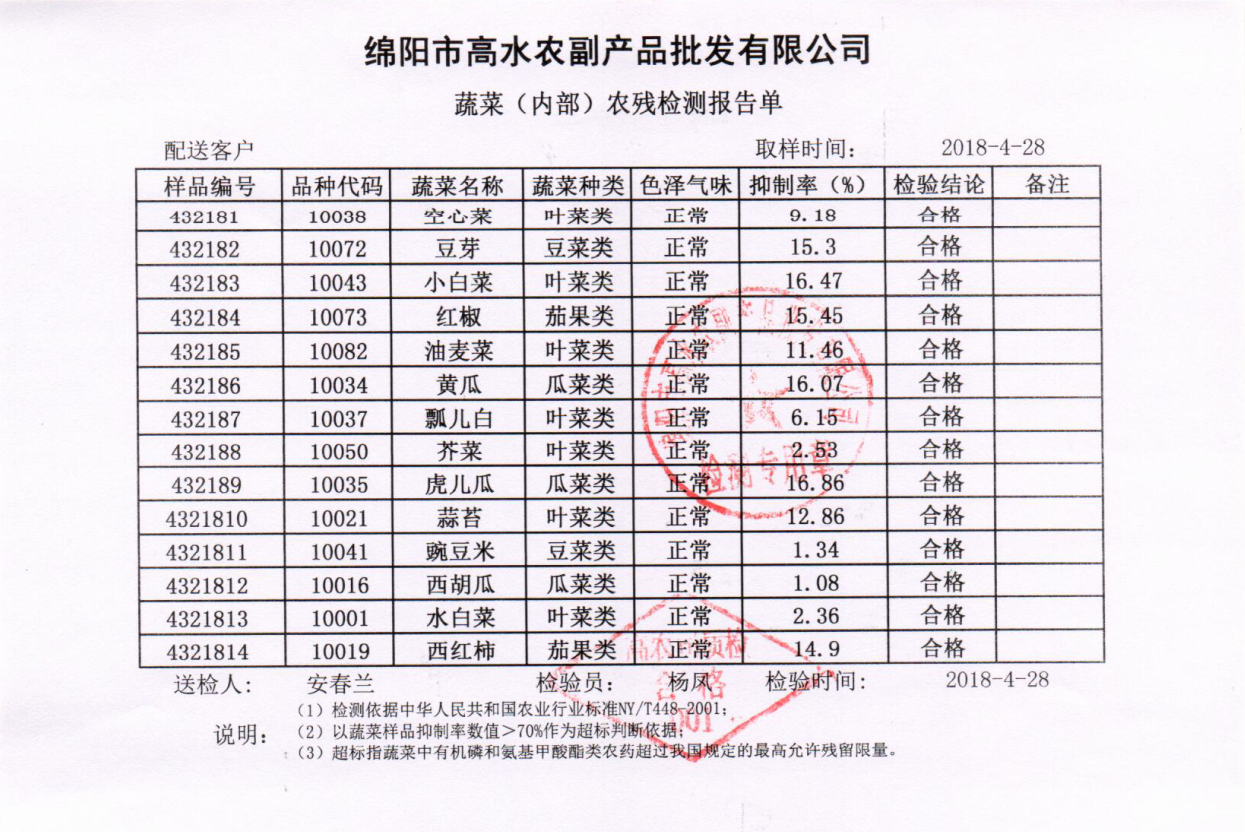 高农司农残检测报告单