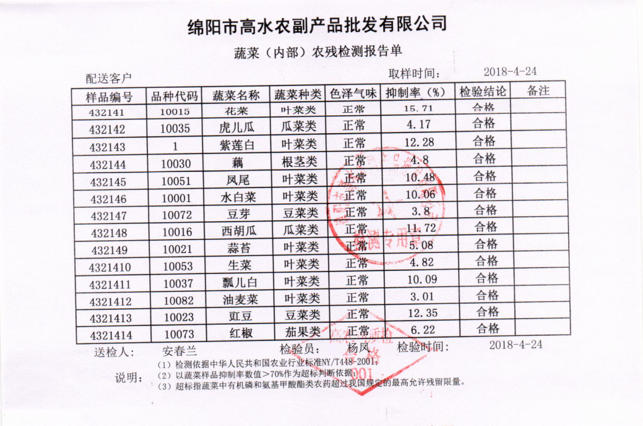 高农司农残检测报告单