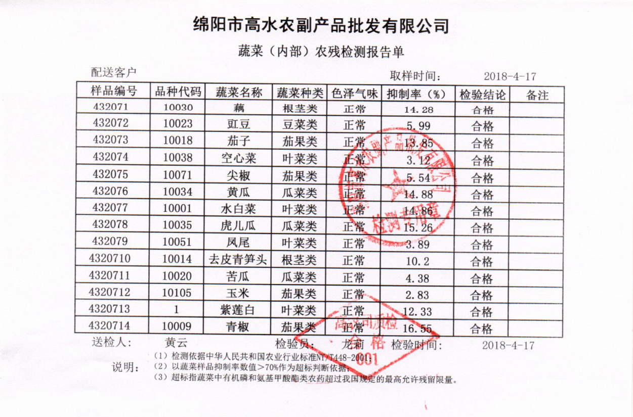 高农司农残检测报告单