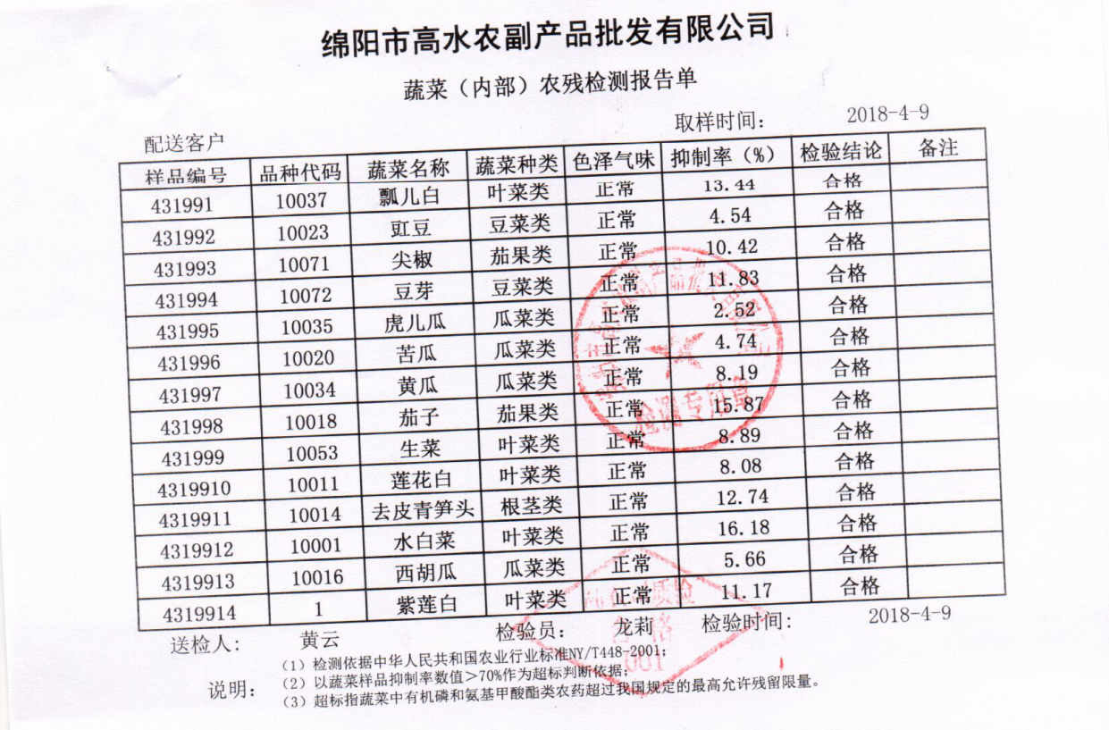 高农司农残检测报告单