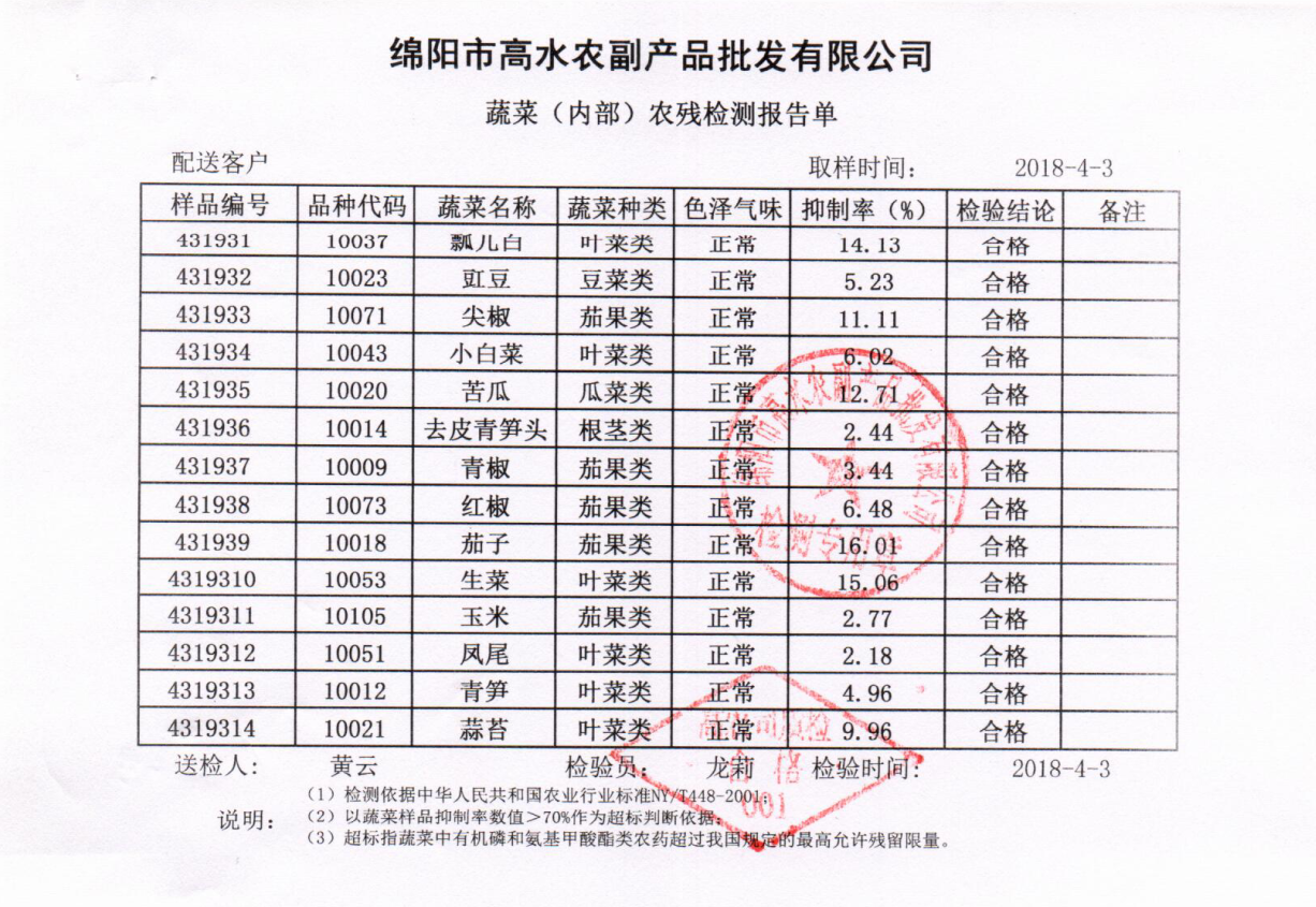 高农司农残检测报告单