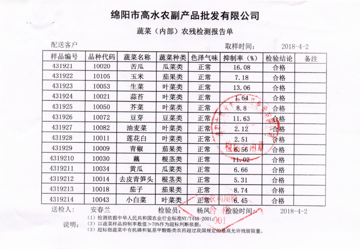 高农司农残检测报告单