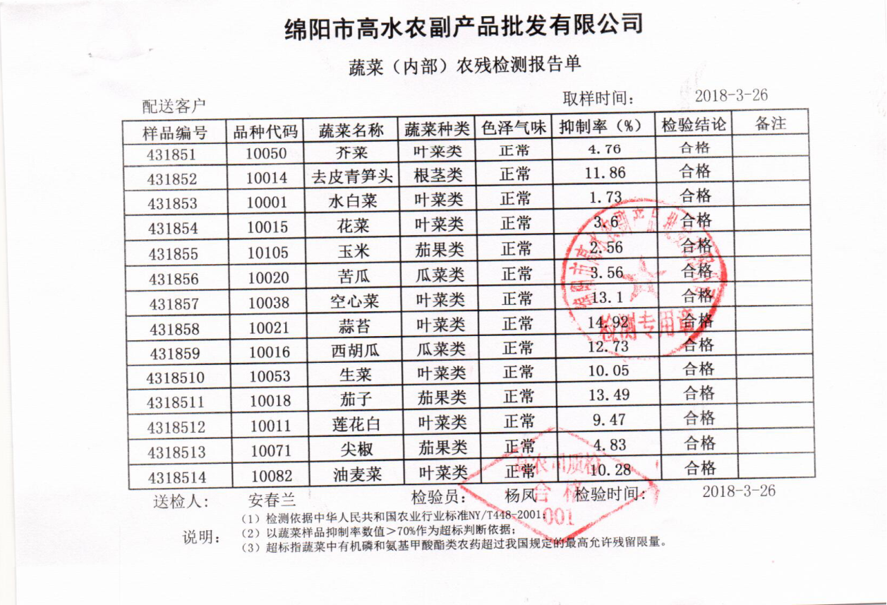 高农司农残检测报告单