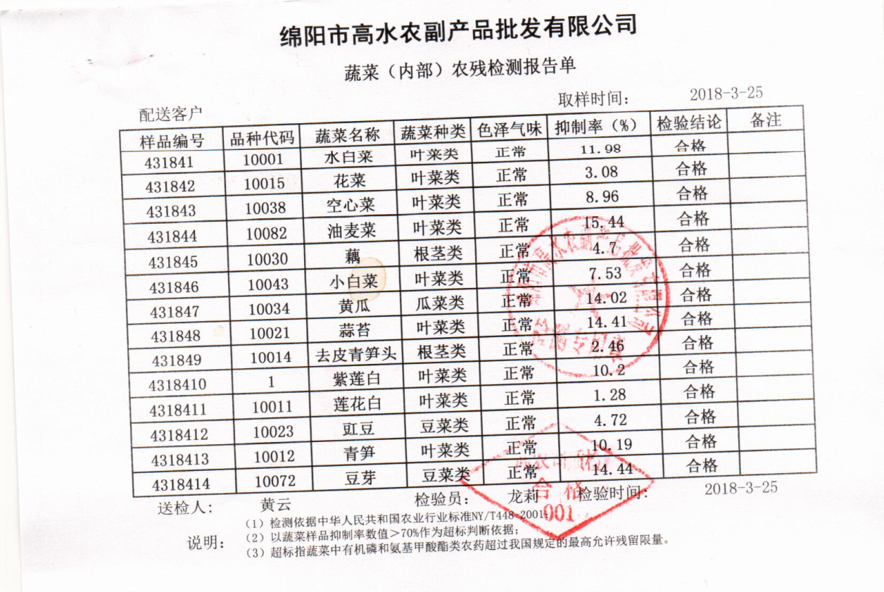 高农司农残检测报告单