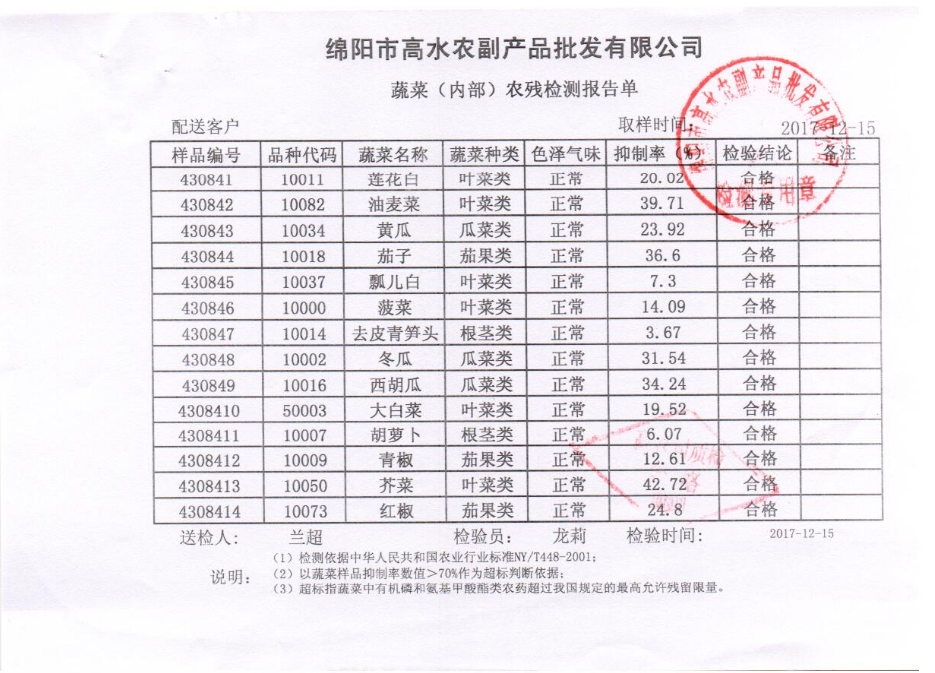 高农司农残检测报告单