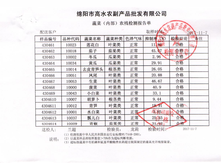 高农司农残检测报告单