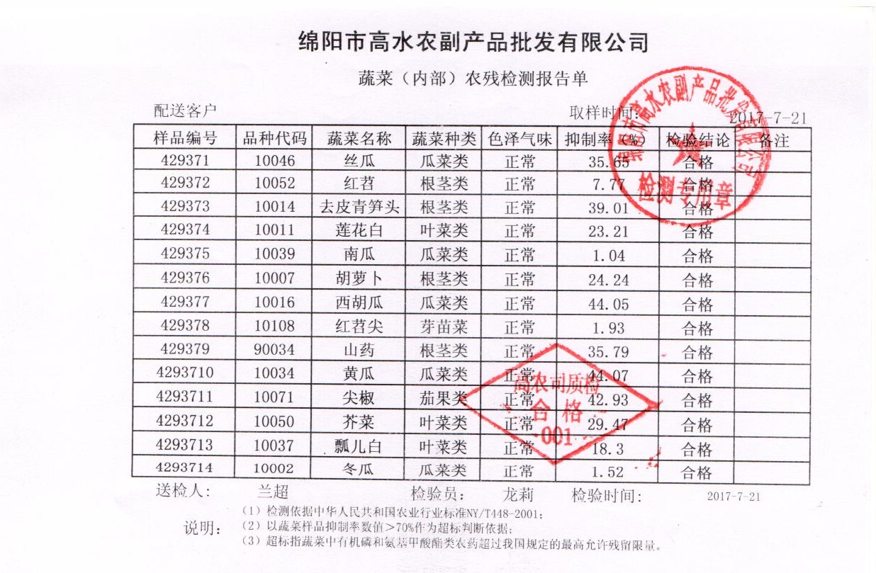 2017年7月21日农残检测报告