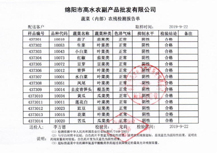 高农司农残检测报告单