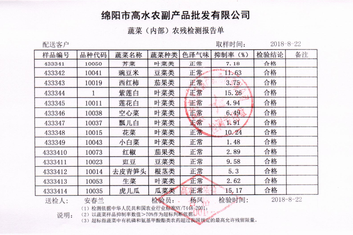高农司农残检测报告单
