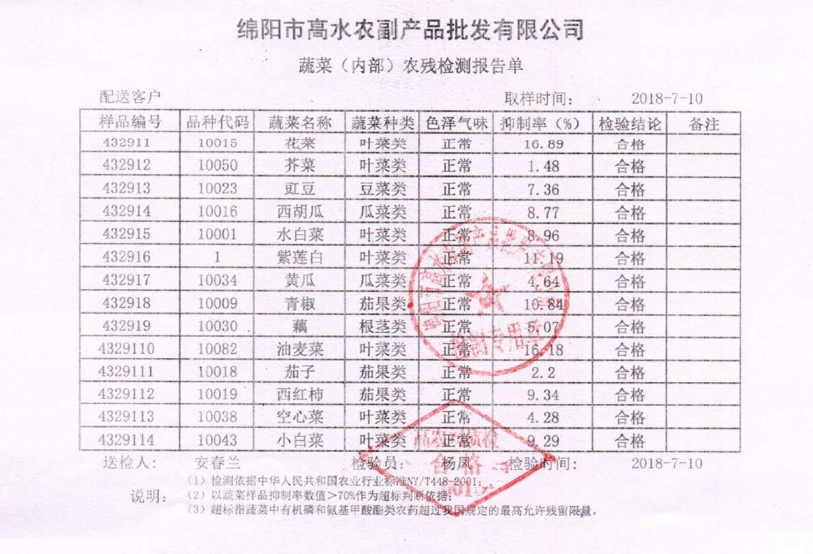 高农司农残检测报告单
