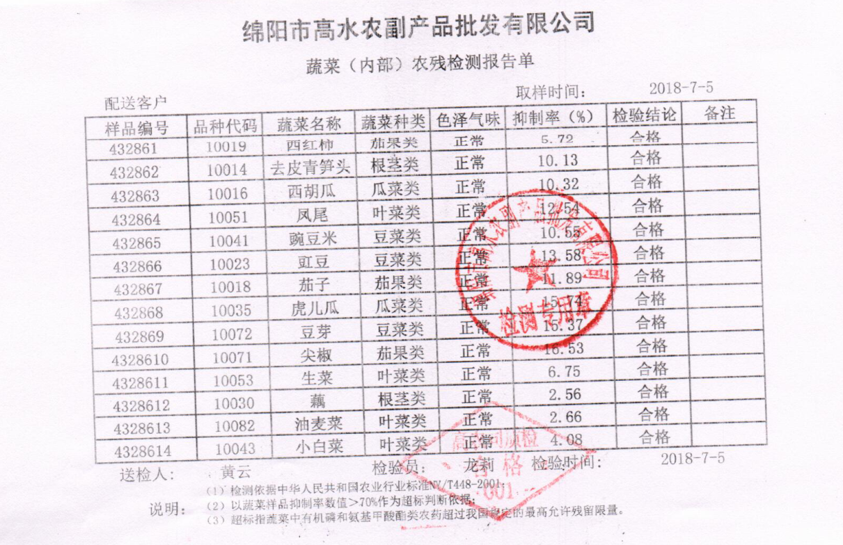 高农司农残检测报告单
