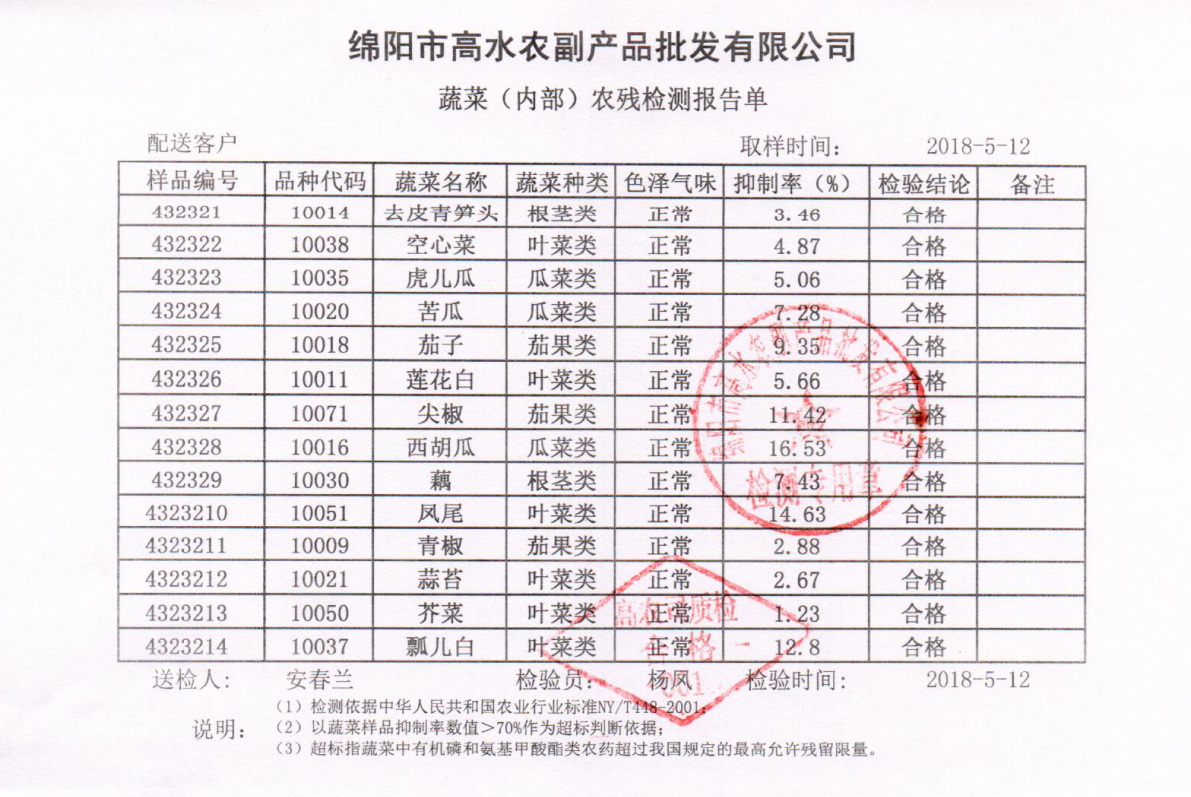 高农司农残检测报告单