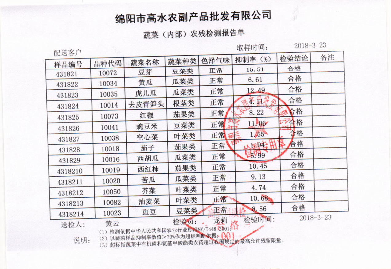 高农司农残检测报告单