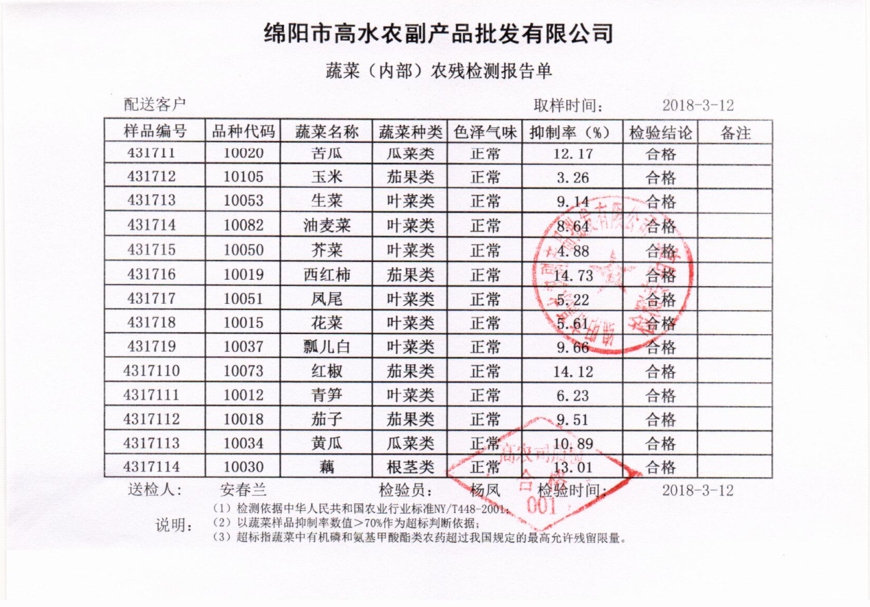 高农司农残检测报告单
