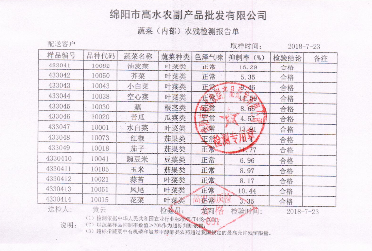 高农司农残检测报告单