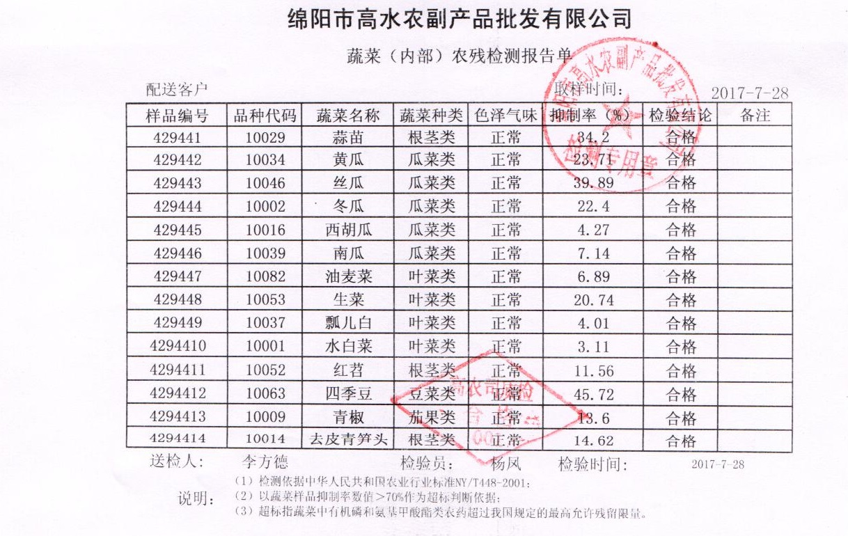 2017年7月28日农残检测报告