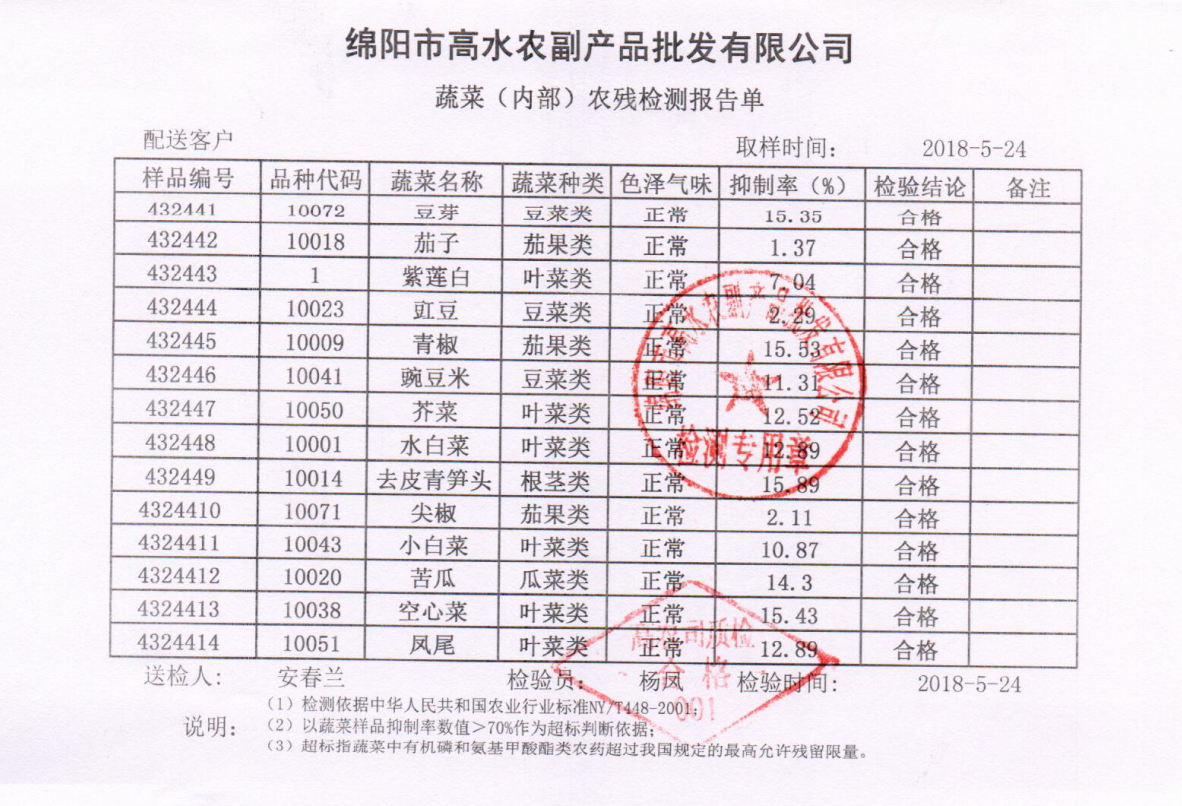 高农司农残检测报告单