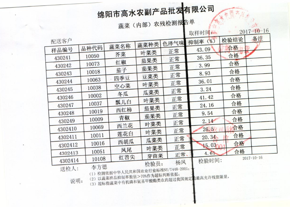 高农司农残检测报告单