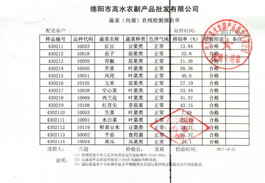 高农司农残检测报告单