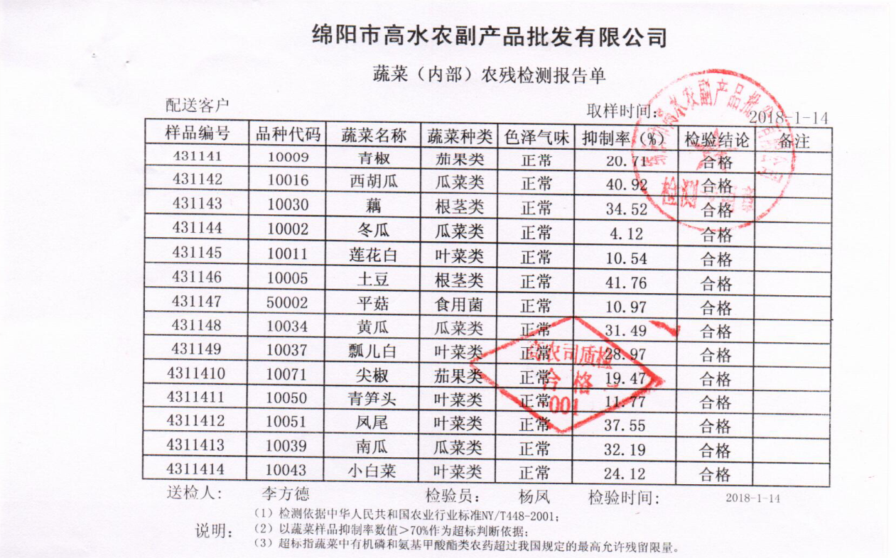 高农司农残检测报告单