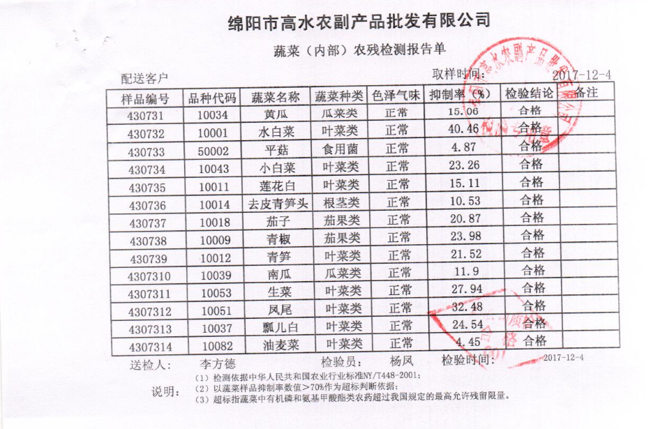 高农司农残检测报告单