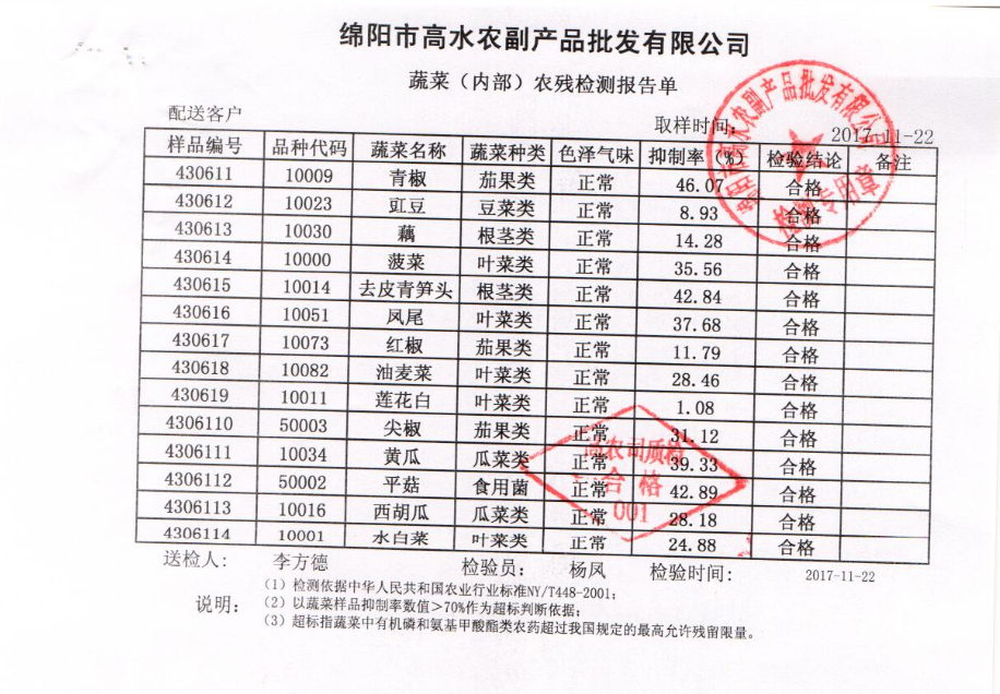 高农司农残检测报告单