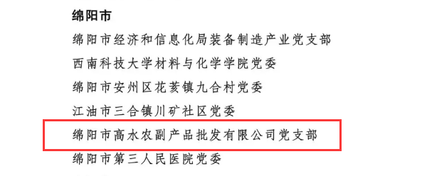 二、拔“高”标准联政企强服务。创新构建“三三三”政商企党建联建共建机制,与绵阳辖区村党委(支部)打造果蔬基地15个,帮助销售果蔬4000余吨/年,受到国家商务部办公厅感谢信表扬。联手金融行业党支部共同打造“裕农新域”智慧农批系统项目,相关经验获省国资委国企改革三年行动专刊推广,公司在省国资委天府综改企业2022年度评估中被评为“标杆”等级。