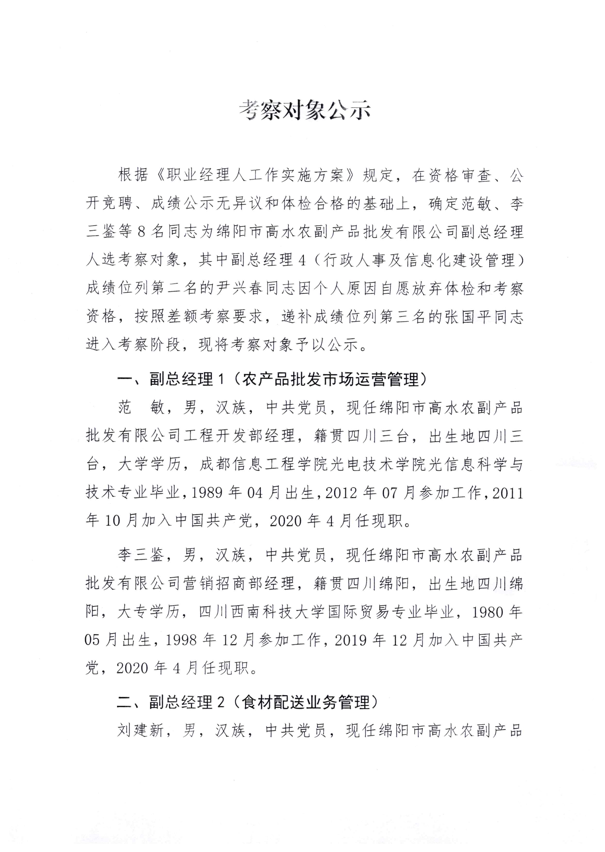 江南官方网站职业经理人(副总经理)考察对象公示