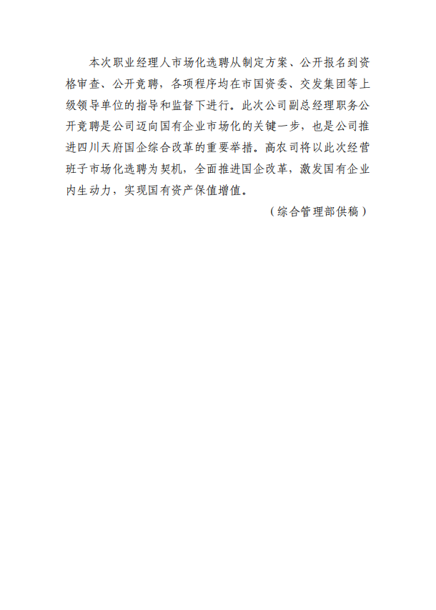 20220909市场动态 〔2022〕第39期高农司举办2022年职业经理人(副总经理)选聘会