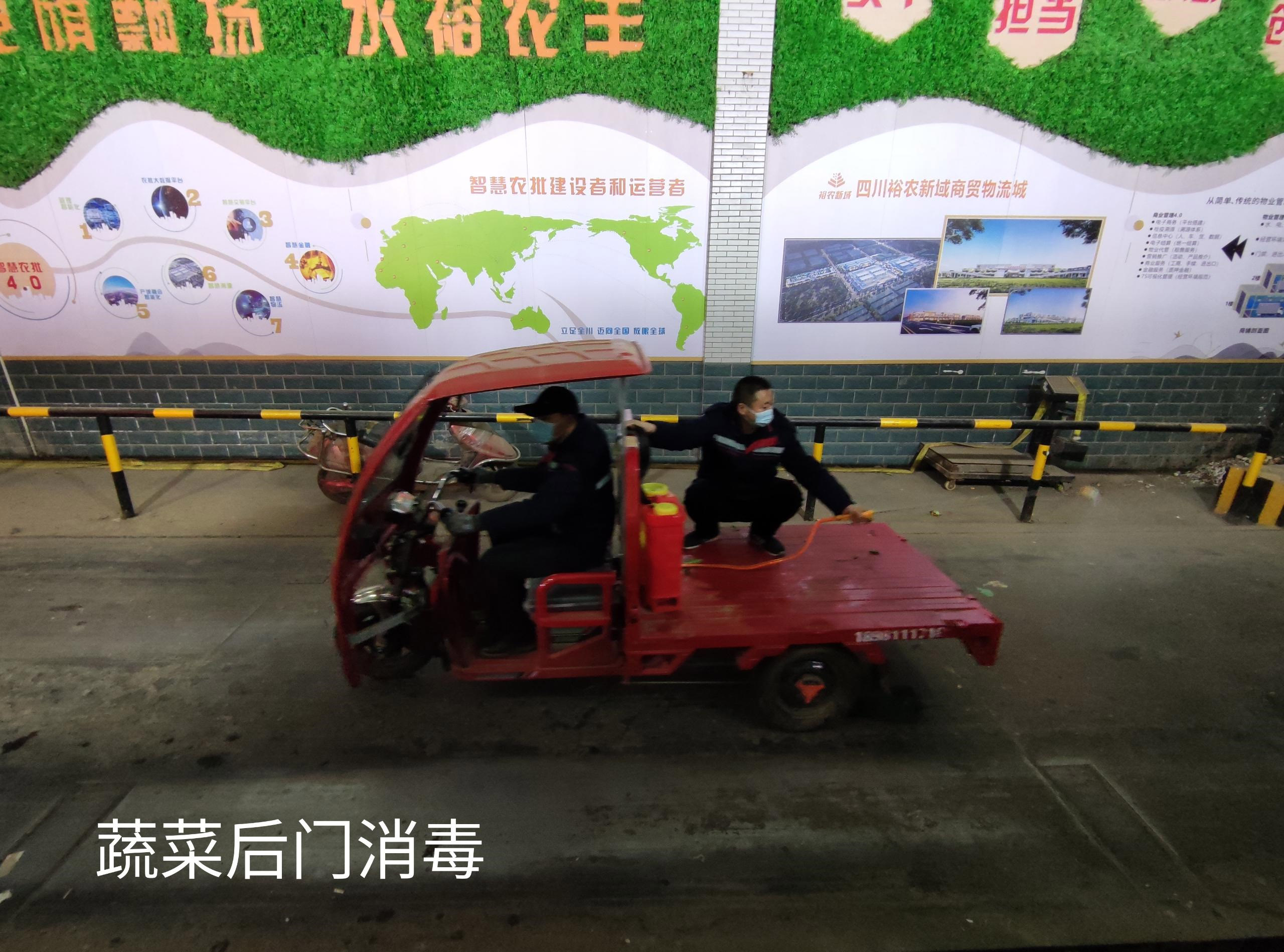 市场消毒工作现已展开并建立消毒台账,对所有入场车辆进行消毒,中高风险地区车辆进行重点消毒,对市场内公共区域、通道等位置每日不少于2次消毒。