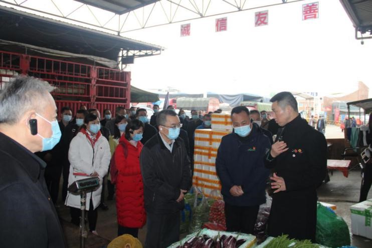 参观团首先来到公司下属蔬菜交易市场,参观公司“旗飘裕农”党建品牌阵地建设情况,听取了公司“两融合一保障”党建工作体系和“两结对四保障”共商共治体系在市场经营中的运用和实践。同时,参观团领导和市场经营户进行了交流,了解市场果蔬供应、销售等情况。