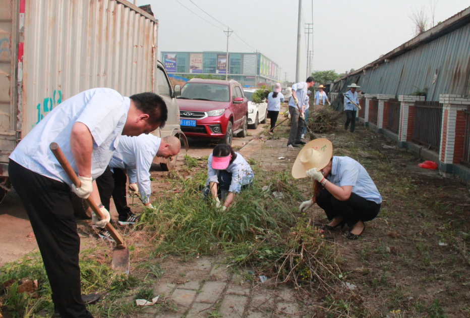 本次党日活动的主题是市场周边环境综合整治。上午9:00所有人员来到蔬菜交易区开展交易区外围杂草清理工作。全体党员以小组为单位分段劳作,锄草、拔草、运送、清扫,大家分工配合,干得热火朝天。经过两个多小时的努力,原来杂草丛生的道路变得干净、整洁了。